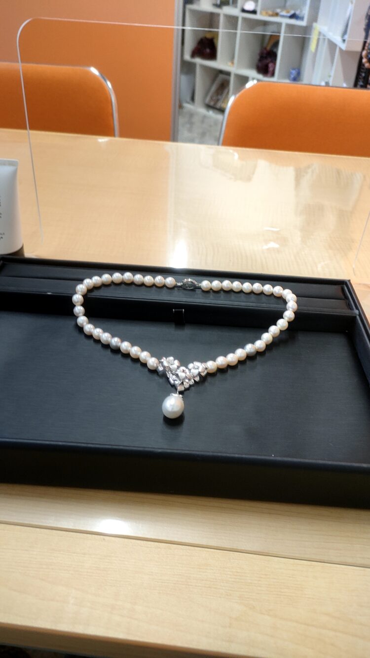 大和市中央林間にお住いのA様より、ダイヤ付パールのネックレスをお買取りさせていただきました!またのご用命心よりお待ちしております。 片付け、出張査定、出張買取も大和ブランド買取家南林間店にお任せください!!